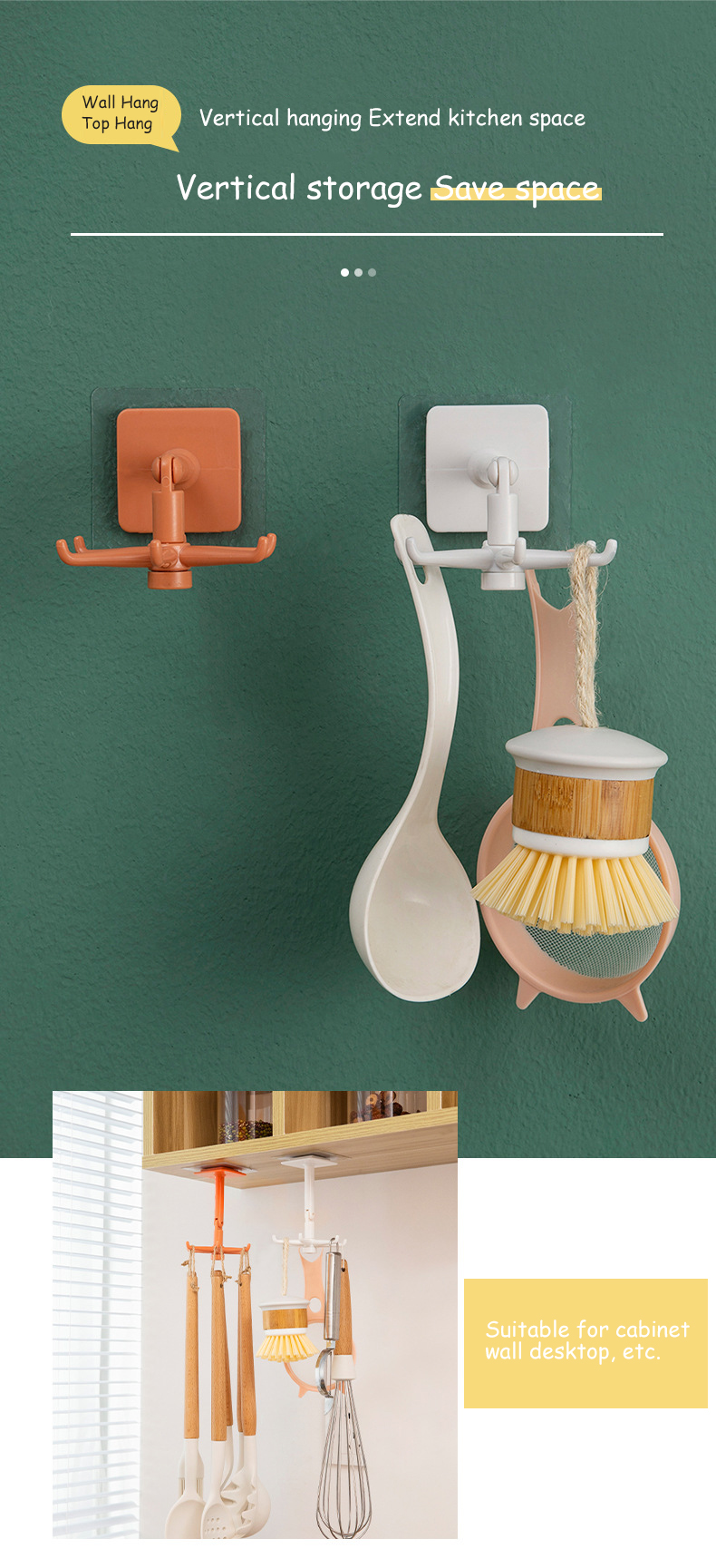 Homy 360°可旋转6钩衣架厨房小钩壁挂式挂钩自吸式厨房浴室挂钩架可调节多功能厨房挂钩