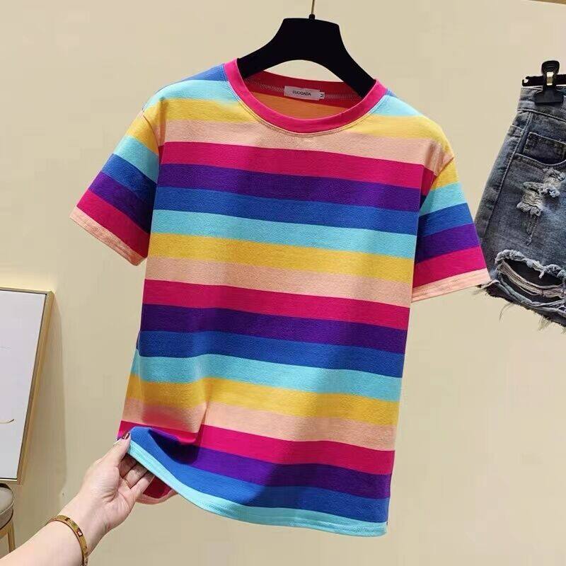 超受欢迎的条纹韩式宽松圆领短袖T恤